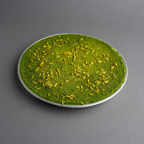 كنافة فاخرة محشوة بالفستق الحلبي مع القشطة العربية ومزينة بالفستق المطحون لمذاق متوازن وغني.