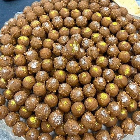 صينية من كرات الميني ترافل الشوكولاتة المحشوة بنوتيلا الكراميل.عدد القطع: 120 قطعة